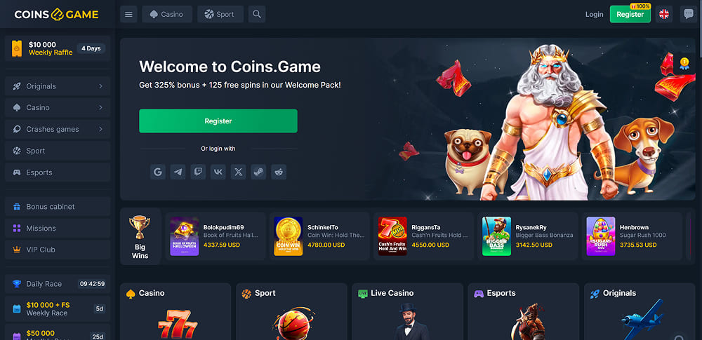 If you join Coins Game online casino today, you can get a welcome bonus: a 325% bonus plus 125 free spins.