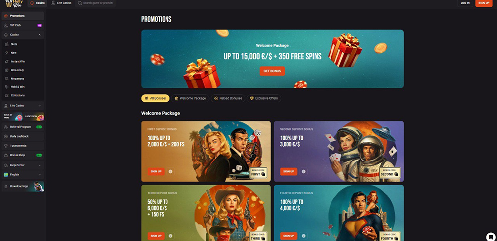 Hollywin Casino Fourth Deposit Bonus | 100% bonus up to 4000 €. WAGER: 40x | no promo code | More Get |