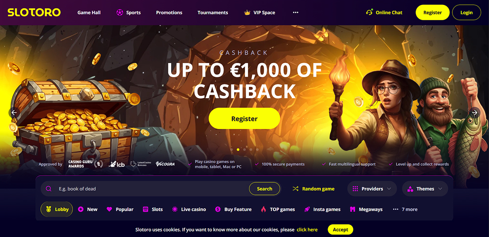 Competing makes playing better. Slotoro Casino has tournaments, and players compete for prizes and not just against the casino.