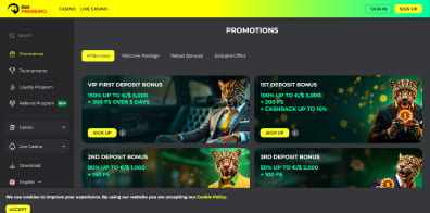 • 250% up to 1000 € + 150 FS Get